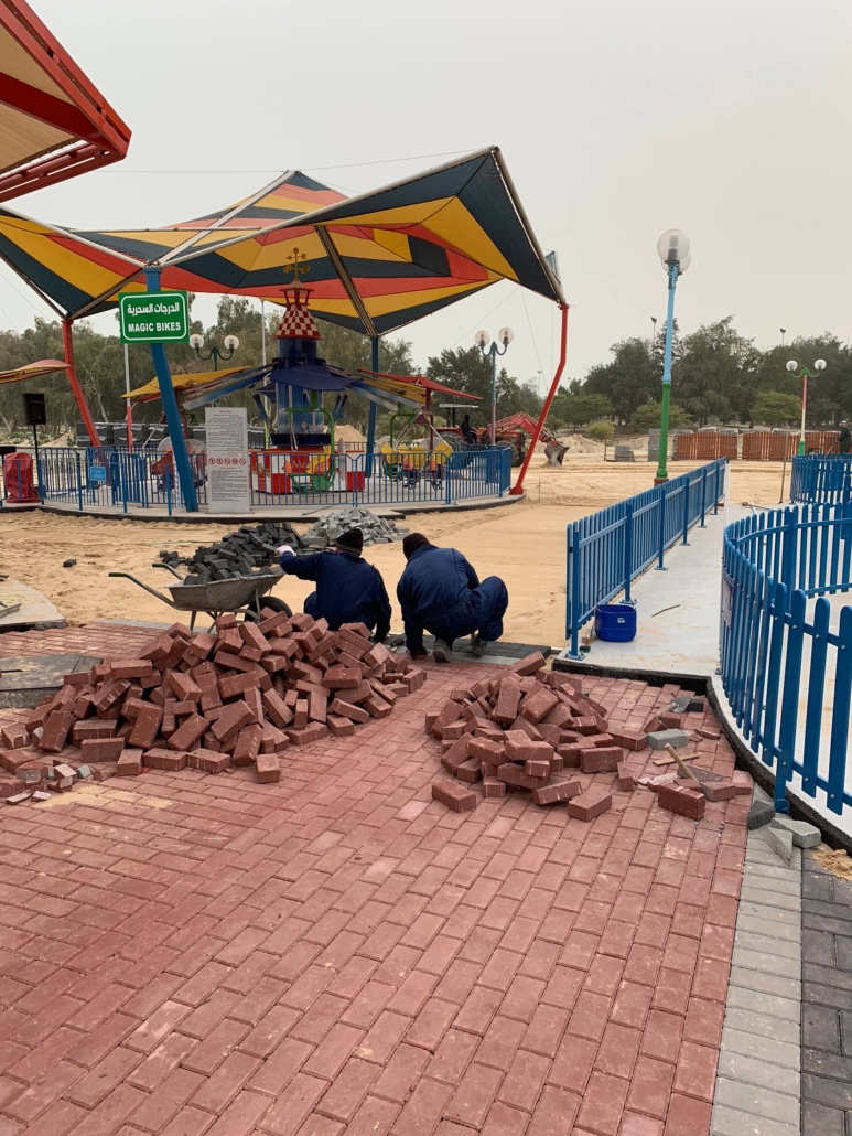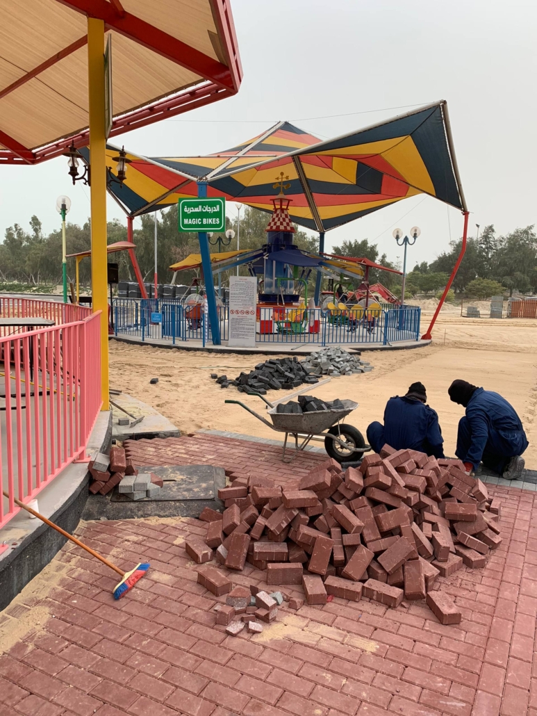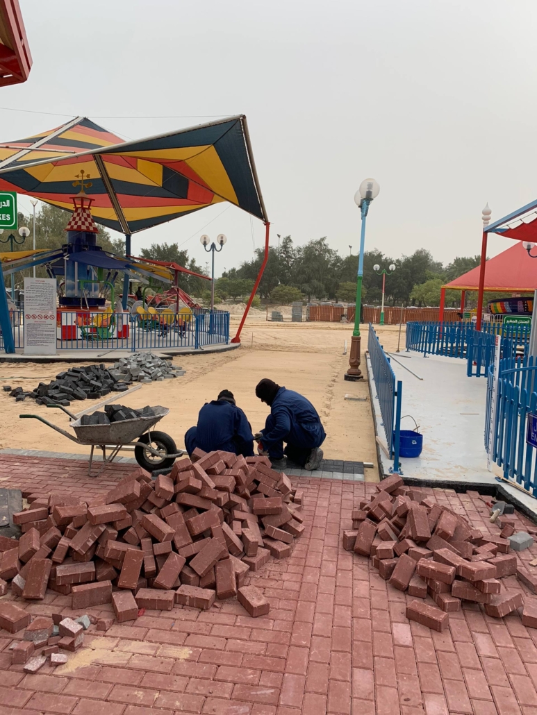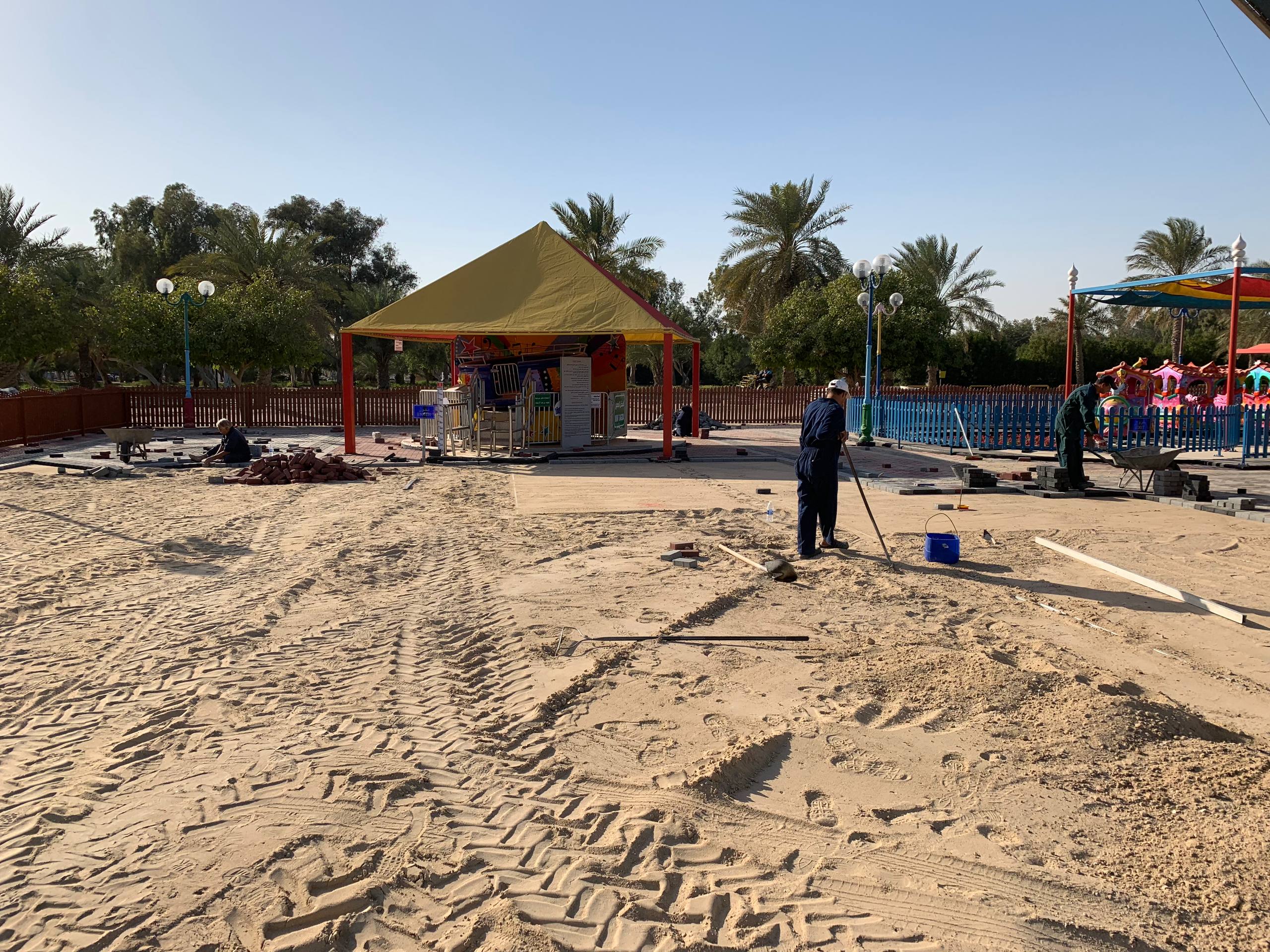 تجهيز منطقة العاب اطفال مكشوفة في منتزه الخيران
